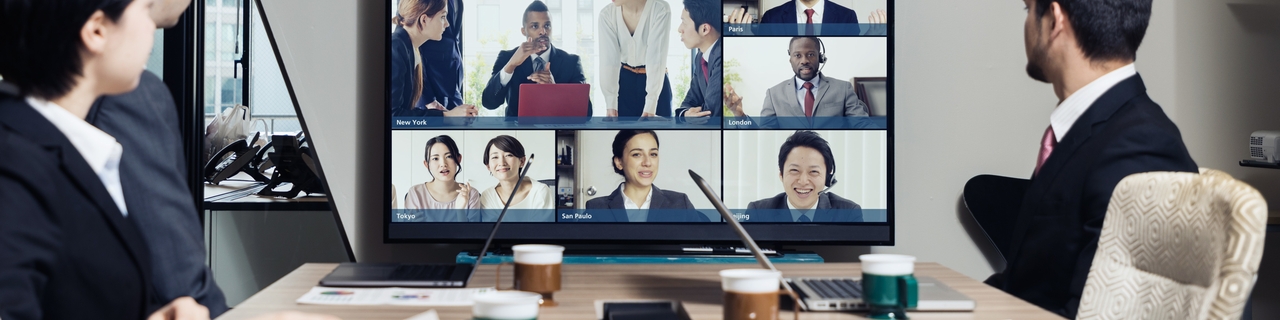 テレビ会議システムとは、インターネットを介して、音声・映像・チャット・資料共有を行うツールです。テレビ会議システムを使えばコストと時間を削減できます。さらに活発な情報共有が可能になり、職場の活性化、迅速な意思決定が行えます。